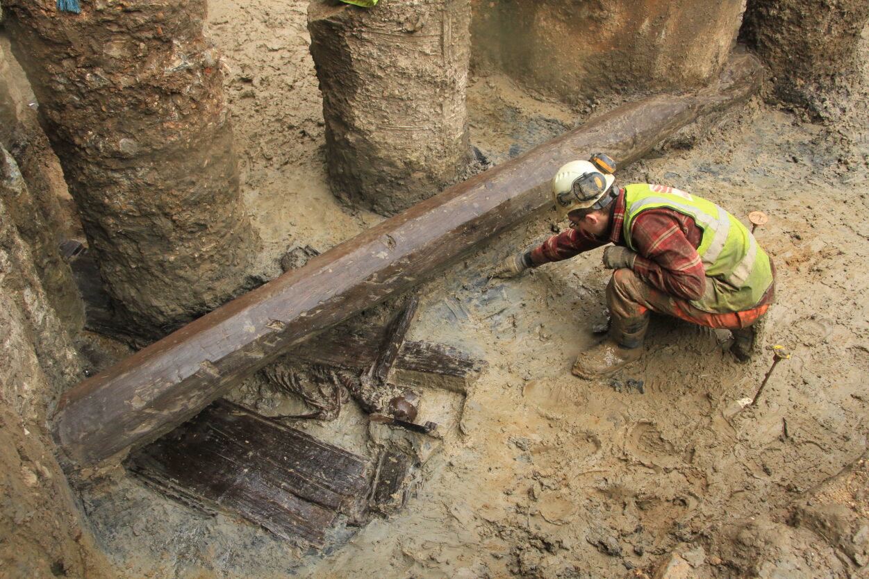 These Roman finds are just the latest layer to be revealed in the site’s slice through London’s history. Archaeologists discovered chalk floors and timber-lined wells, thought to be the remains of a 13th century tannery. Further wooden finds included a large 15th- or 16th-century water-pipe, which appears to have originally been used to pump water on a ship.