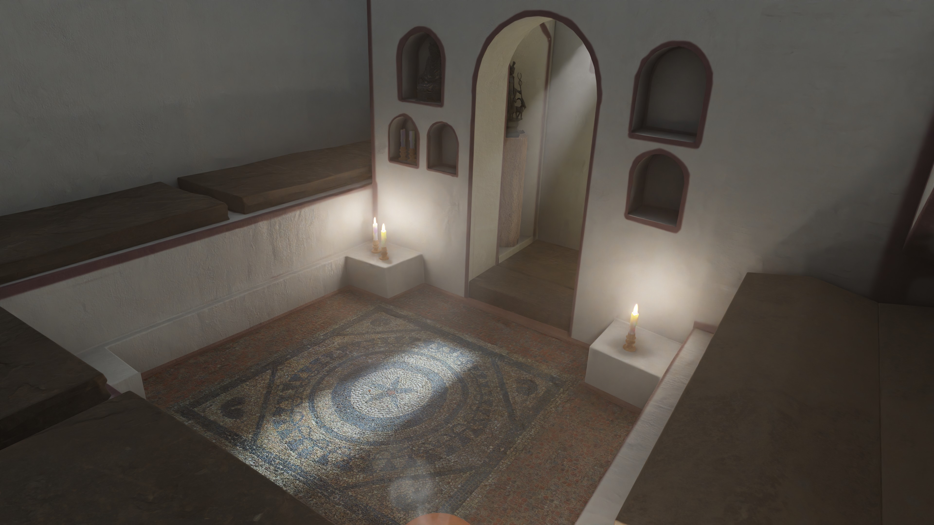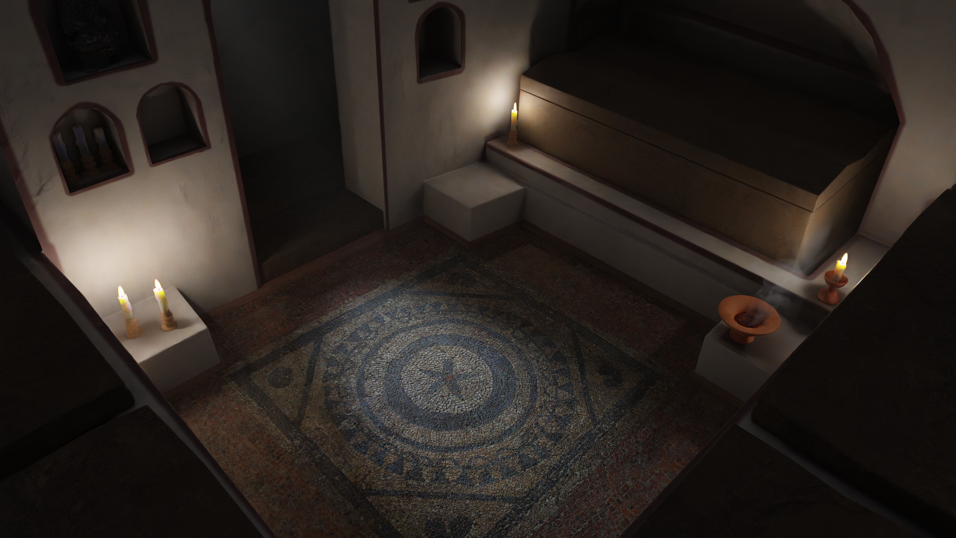 The mausoleum underwent significant modifications during its lifetime and archaeologists uncovered a second mosaic directly beneath the first - indicating the floor of the structure was raised during its lifetime. The two mosaics are similar in design, with a central flower surrounded by a pattern of concentric circles set within a pavement formed of small red tiles.