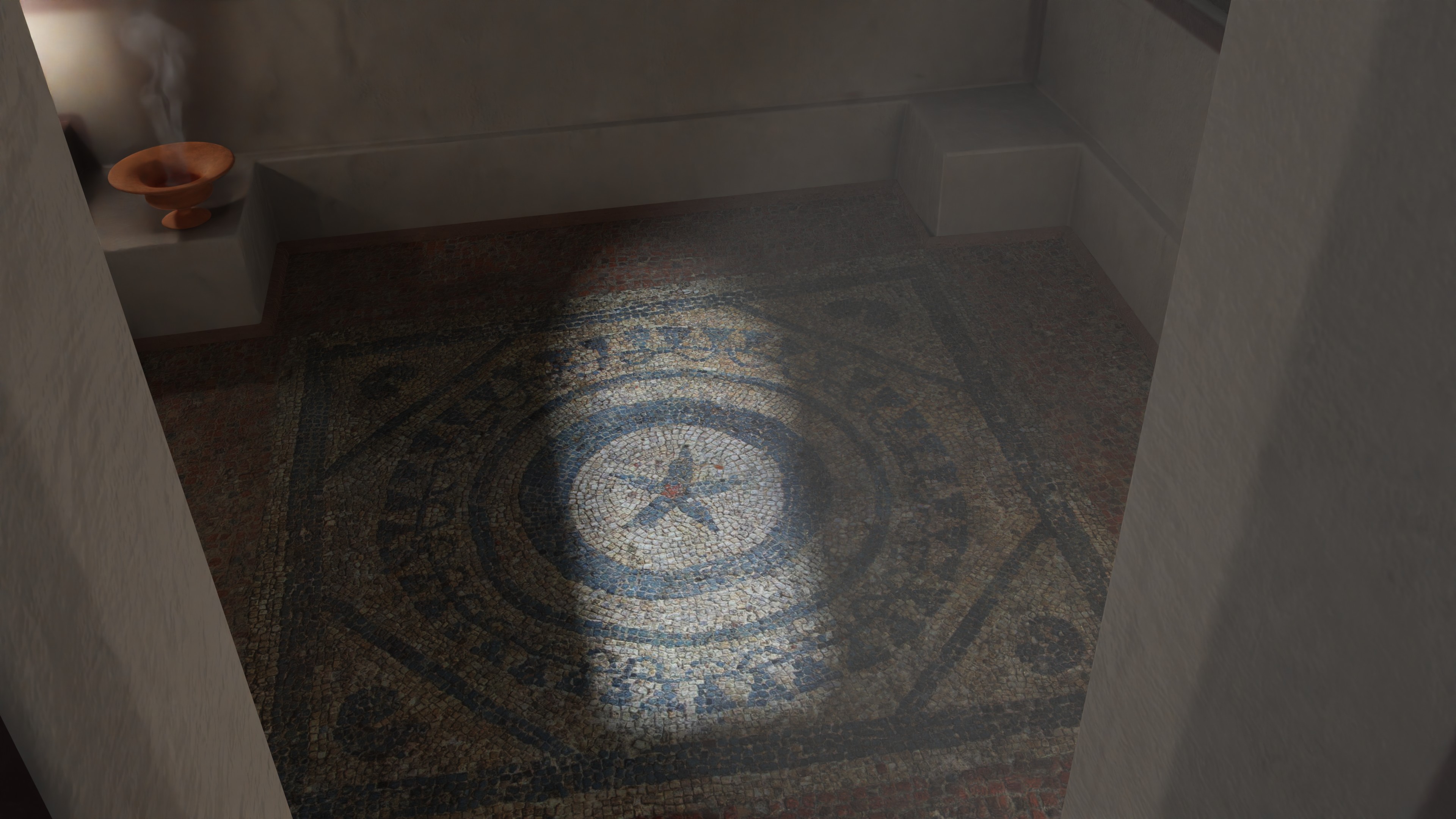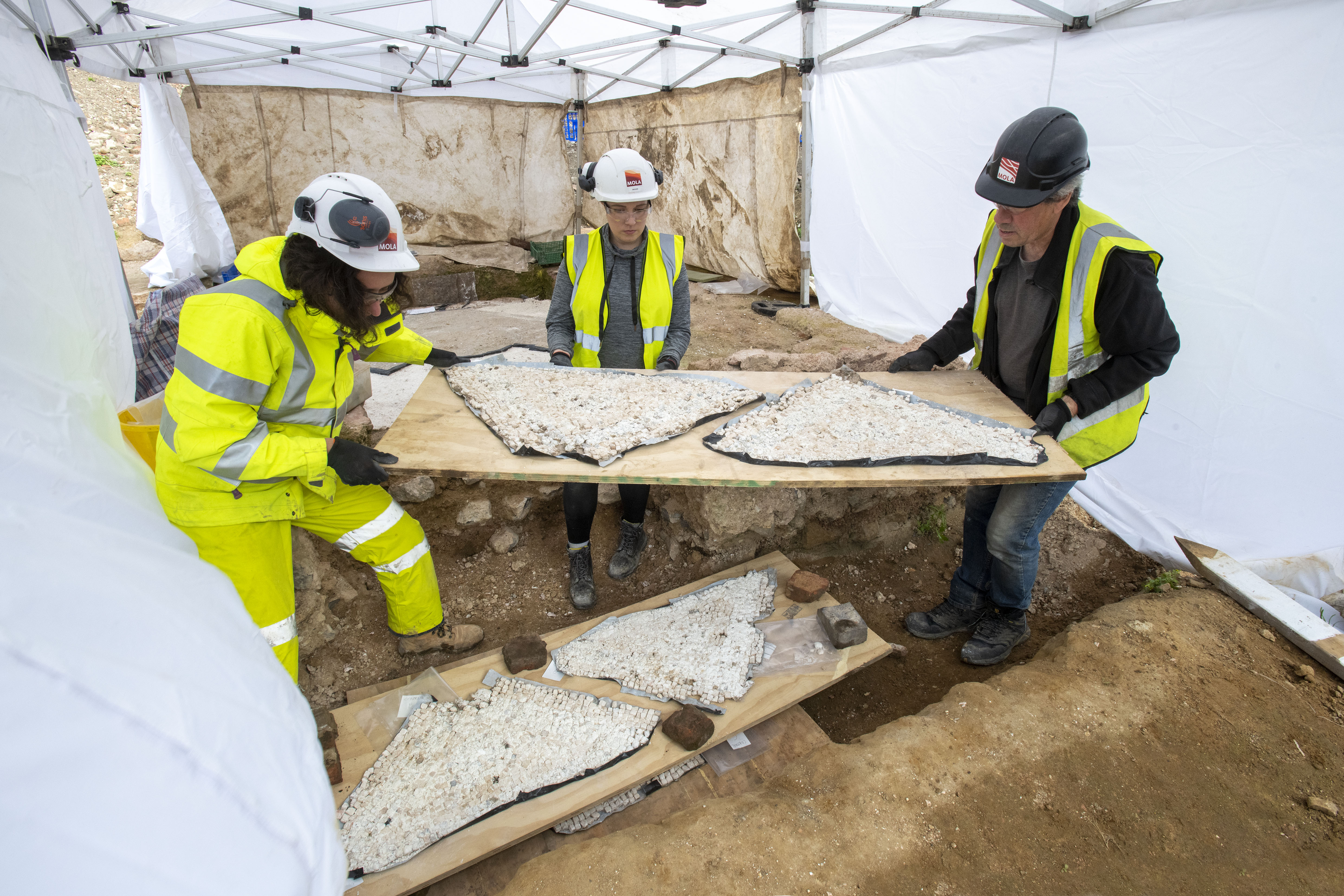 The lower mosaic of the mausoleum, revealed directly beneath its later counterpart.